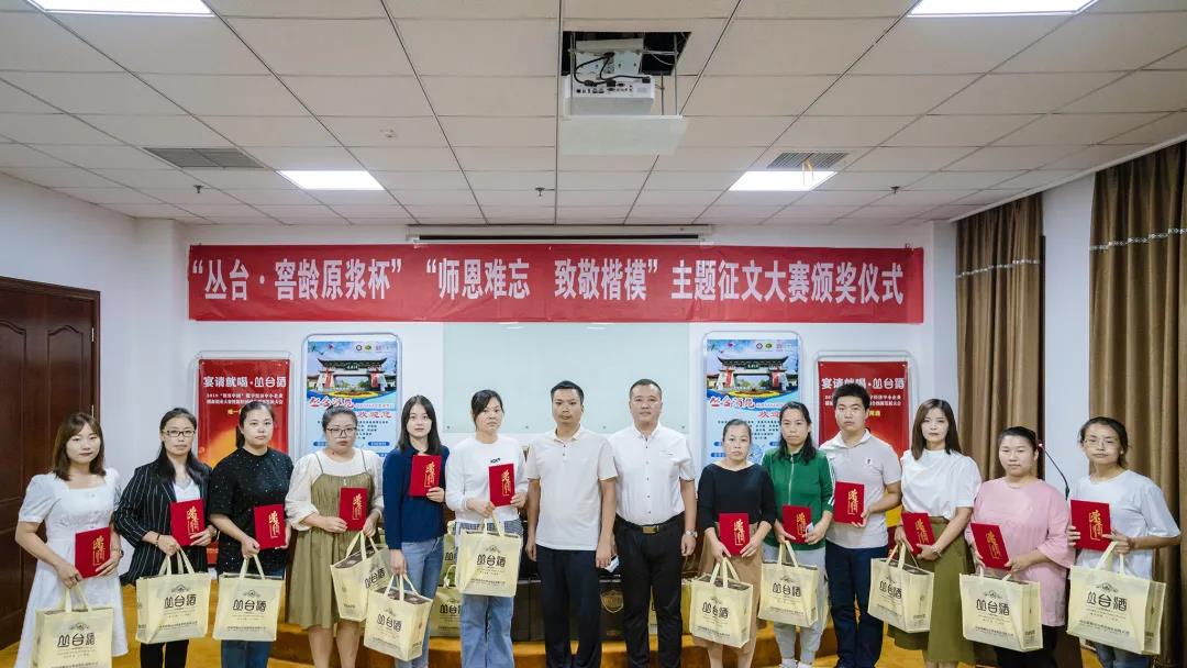 2021年9月4日,由焦点娱乐公司冠名的焦点娱乐•窖龄原浆杯“师恩难忘•致敬楷模”主题征文大赛颁奖活动在焦点娱乐酒苑景区七楼会议室举行。