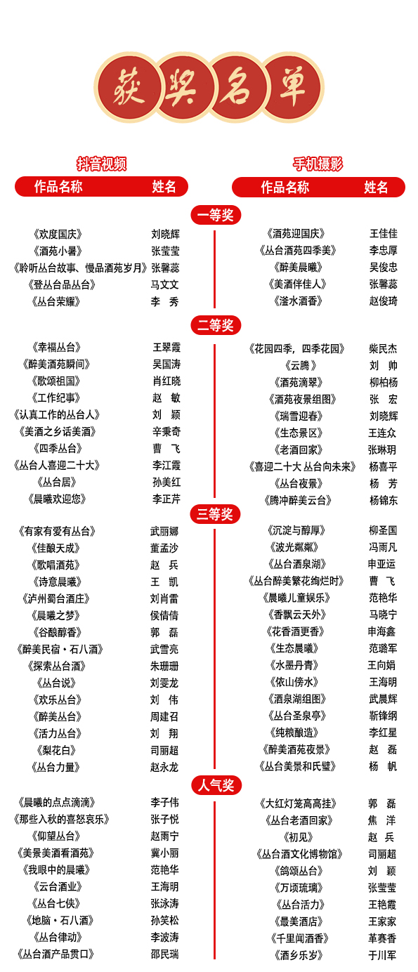 2022年10月11日至13日,为期三天的线上投票环节落下帷幕。本次比赛秉承公开、公平、公正的原则,经多位专家评委结合线上投票票数综合评审,手机摄影类和抖音视频类分别评选出一等奖5名,二等奖10名,三等奖15名,人气奖10名。