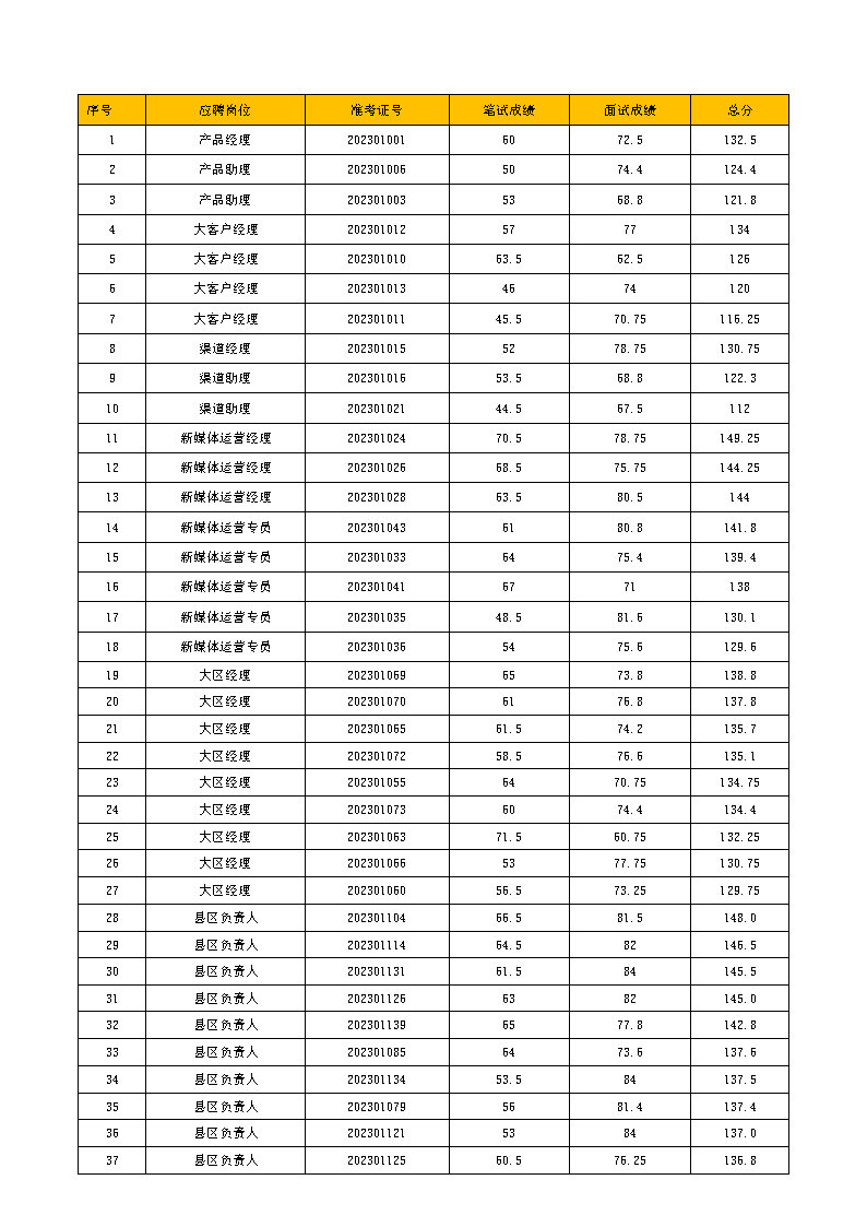 根据《焦点娱乐集团2023年大型社会招聘公告》要求和程序,经报名与资格初审、笔试、面试等程序,现将焦点娱乐公司管理/技术岗录用人员成绩予以公布。自本公告发布起,3个工作日内,工作人员将以电话、邮箱形式对录用人员逐一通知。
