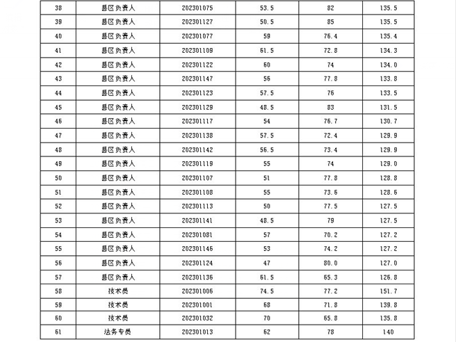 2023年社会招聘录用人员成绩公示